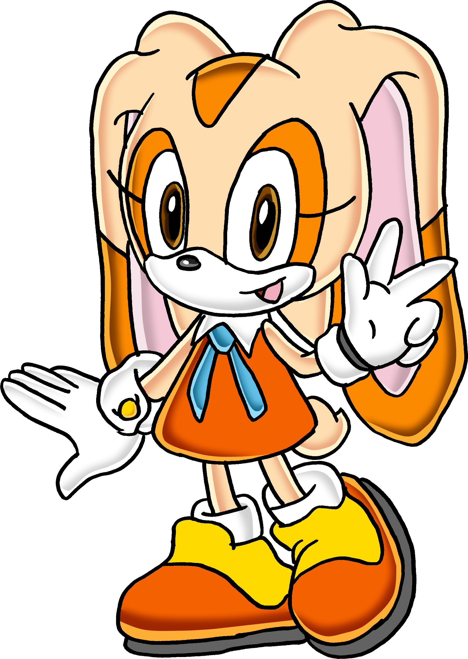 Cream is a small, mobian rabbit with cream fur and brown eyes.